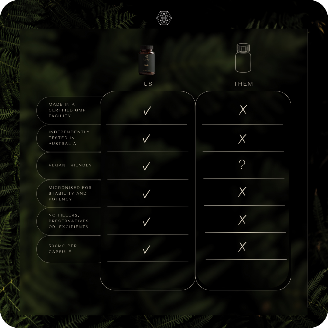 NMN 100% Pure & Stabilised (60 Capsules X 500mg) Third Party Tested