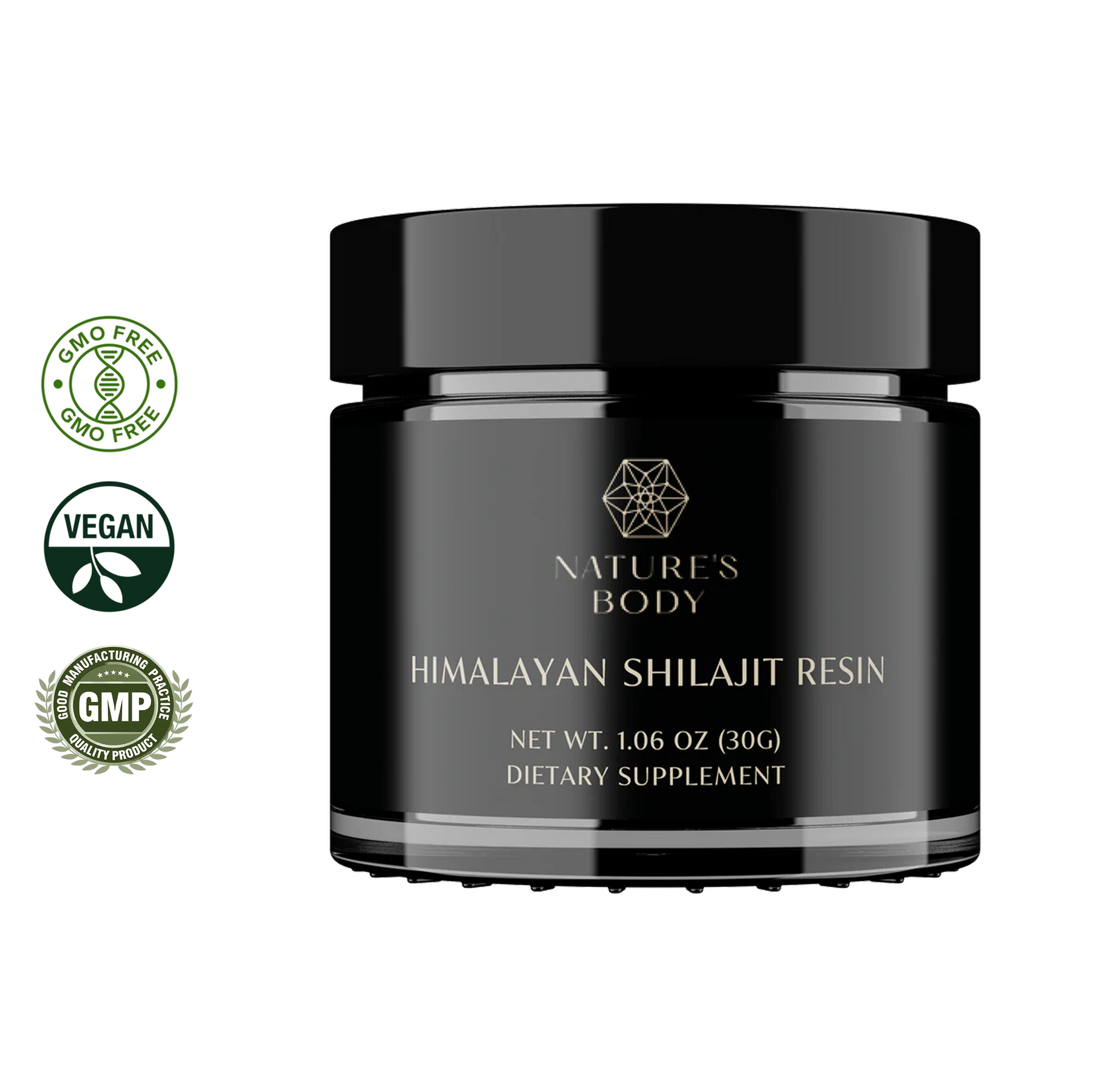 Nature's Body Pure Himalayan Shilajit Resin, an ultra-potent 80%+ fulvic acid powerhouse, harnesses the ancient wisdom of the Himalayas. Our black gold resin, wild-harvested from pristine, high-altitudes, is a true superfood for your cells.